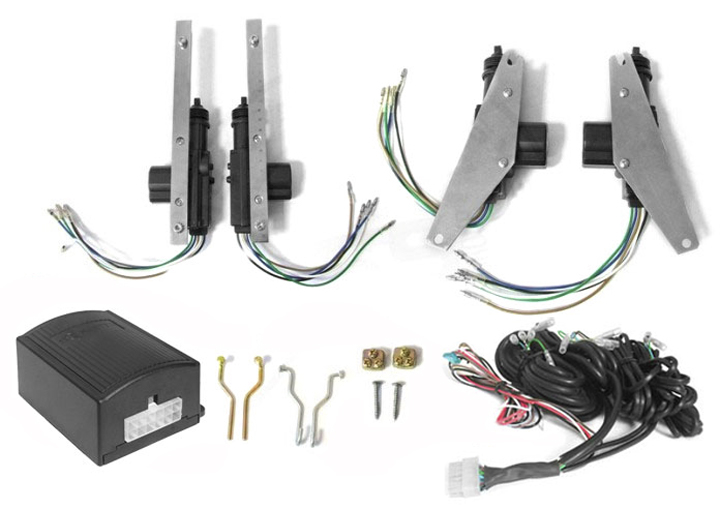 Centrálne zamykanie na kľúč pre 4-dvere - sada pre vozidlá ŠKODA FABIA II, 4 ks päťvodičové servo, riadiaca jednotka, sada tiahel, spojovací materiál, kabeláž pre 4-dvere vozidla. Sada je upravená pre montáž bez vŕtania.