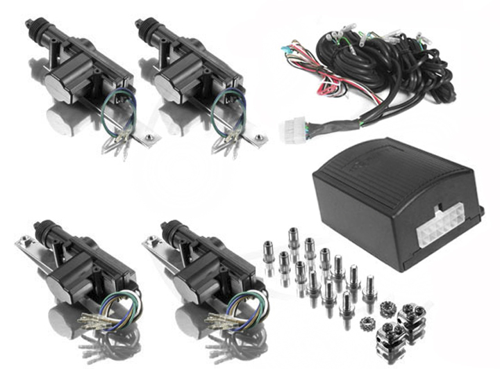 Centrálne zamykanie na kľúč pre 4-dvere - sada pre vozidlá ŠKODA FELICIA, 2 ks päťvodičové servo, 2 ks dvojvodičové servo, sada tiahel, spojovací materiál, kabeláž pre 4-dvere vozidla