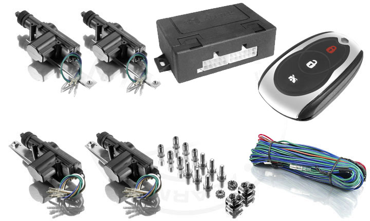 Centrálne zamykanie na diaľkové ovládanie pre 4-dvere - sada pre vozidlá ŠKODA FELICIA, 2 ks päťvodičové servo , 2 ks dvojvodičové servo, sada tiahel, spojovací materiál, kabeláž pre 4-dvere vozidla