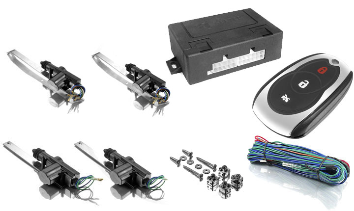 Centrálne zamykanie na diaľkové ovládanie pre 4-dvere - sada pre vozidlá ŠKODA OCTAVIA, 2 ks päťvodičové servo, 2 ks dvojvodičové servo, sada tiahel, spojovací materiál, kabeláž pre 4-dvere vozidla